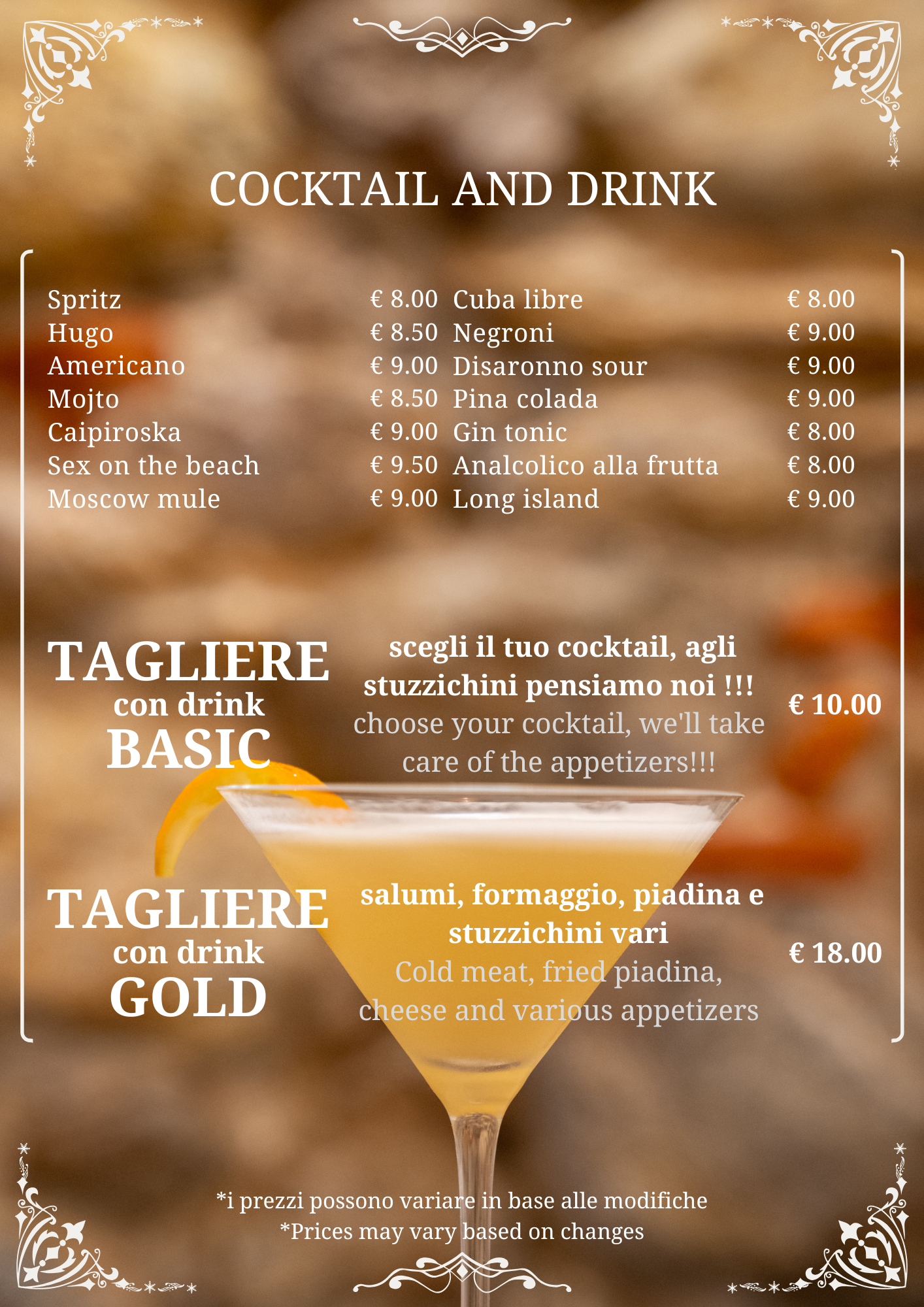 Accanto ai piatti della tradizione proponiamo anche specialità del giorno, per offrire varietà e mantenere viva la stagionalità, senza perdere coerenza con la nostra identità.